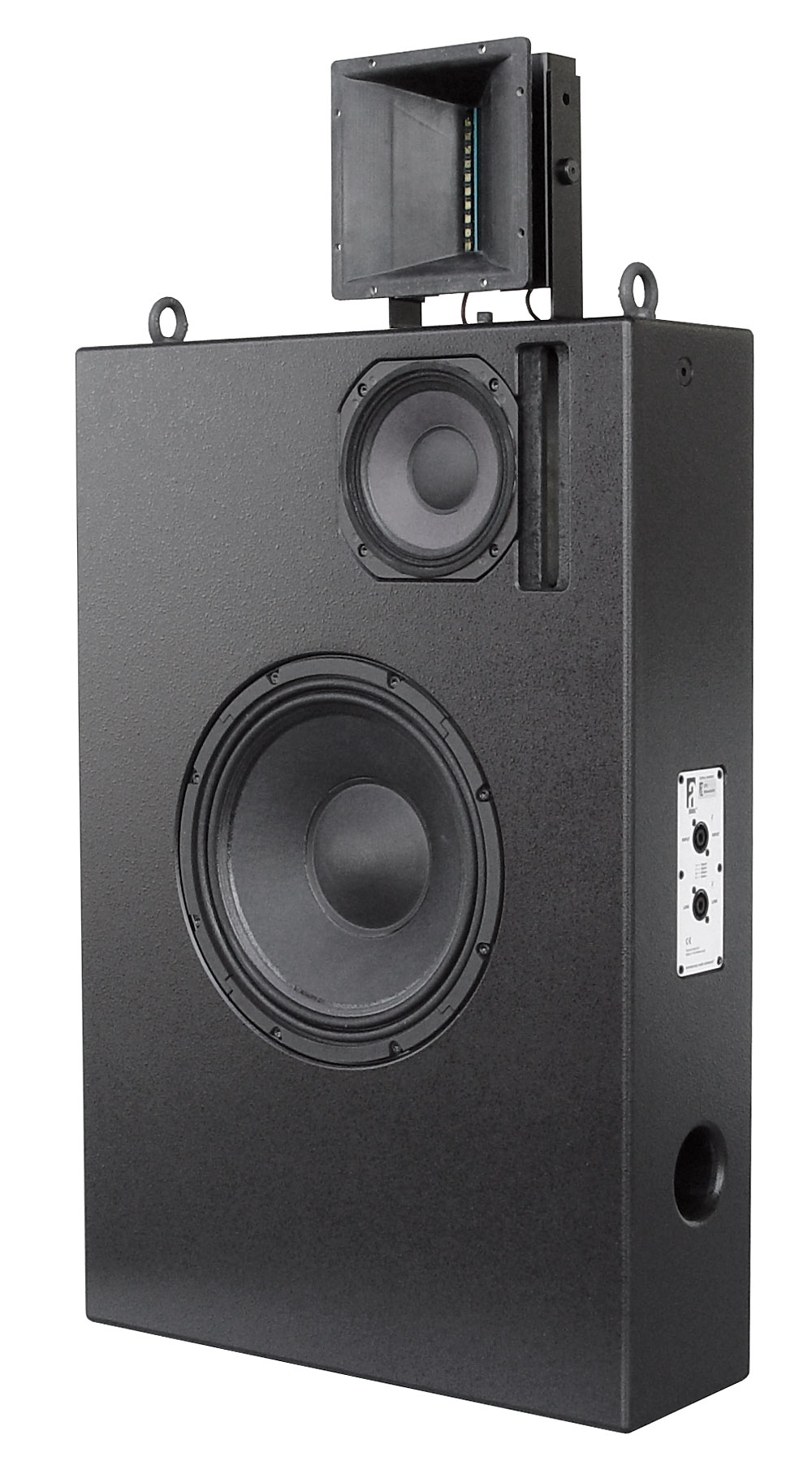 RBN401 pro频段高频驱动器,6.5“中程和12”低音扬声器,可调高频驱动器,精确投影行业最浅外壳(18cm/7-in.),信号完整性传感™预布线电缆补偿“Real-90”色散,H 90°x V 40°(nom.)飞行,堆叠,壁挂式定位,也可在“Front-Vent”版本的挡板墙安装.